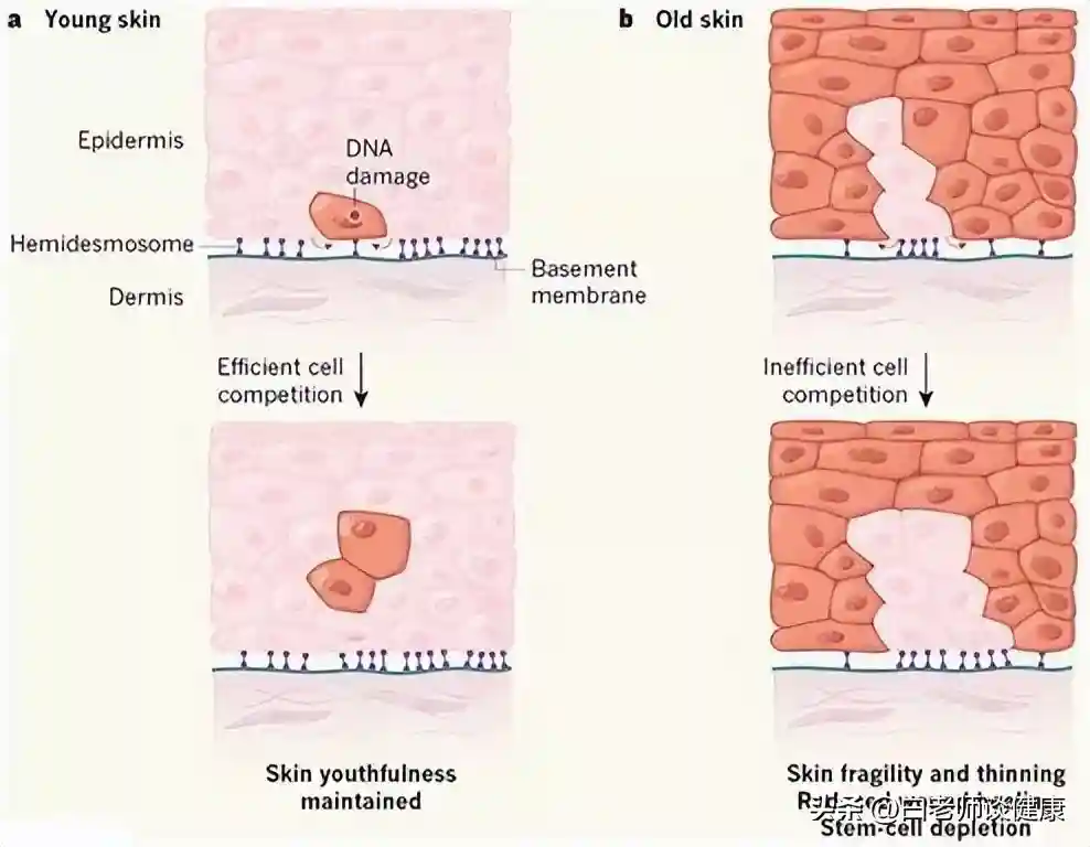 简单来说,在人们的皮肤表层深处存在大量细胞,当细胞中含有较高量的COL17A1胶原蛋白时,皮肤就会显得年轻。在“适者生存”的情况下,这些强壮健康的皮肤细胞往往会比那些脆弱的细胞更有竞争力。