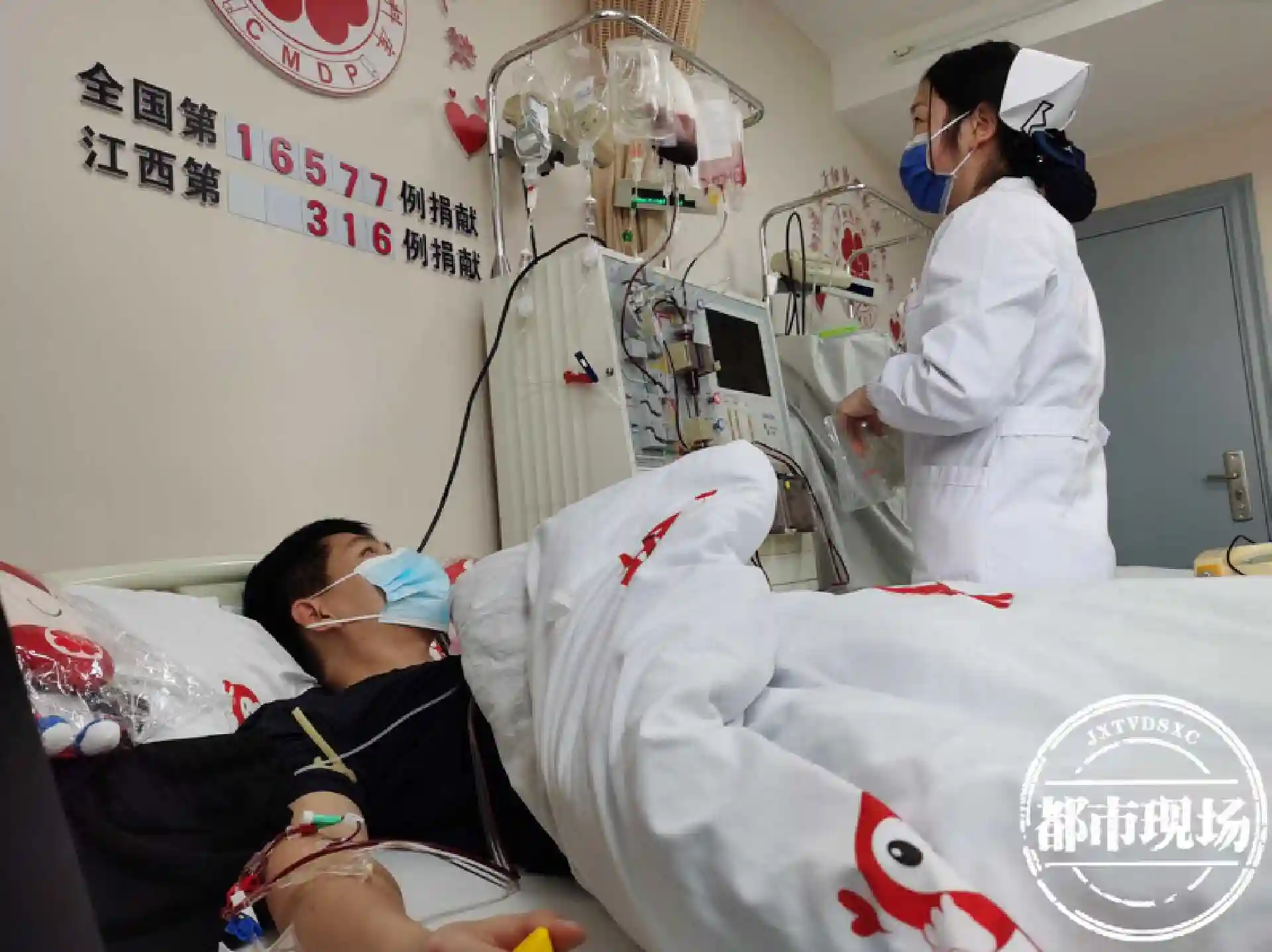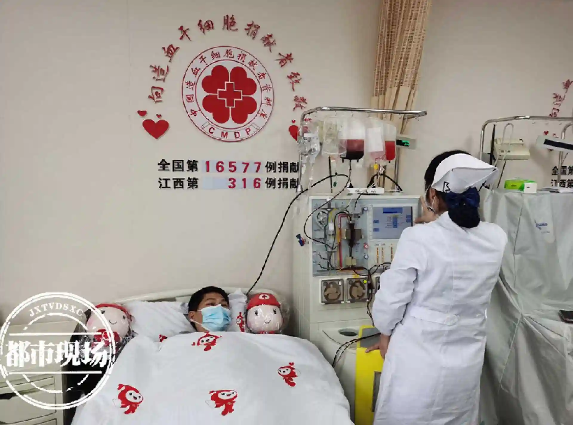 上午8点,陈先生正式开始捐献造血干细胞,一切进展得很顺利。36岁的陈先生说,他来自九江,也是一名医务工作者,2014年,他在一次献血时加入了造血干细胞捐献志愿者队伍。今年8月,接到红十字会工作人员电话被告知,他和一位血液病患者配型成功。