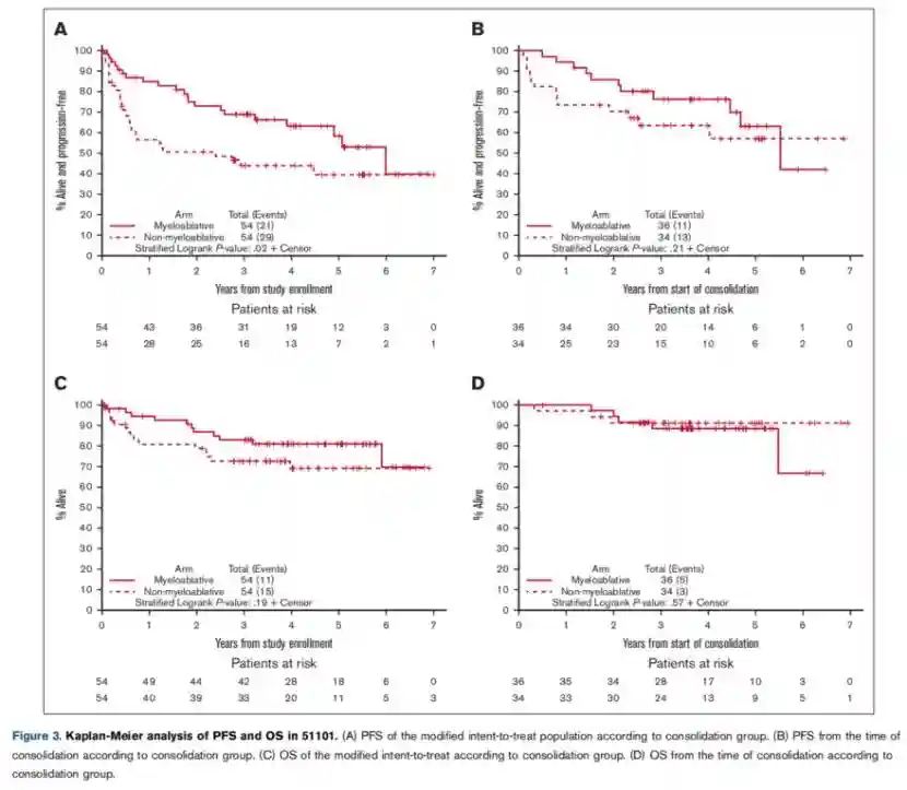 在CALGB51101(NCT01511562)试验中,研究者比较了清髓性巩固(卡莫司汀+塞替派预处理后进行自体造血干细胞移植)与非清髓性巩固(高剂量阿糖胞苷+依托泊苷)的疗效和安全性。医脉通小编整理如下,以飨读者。