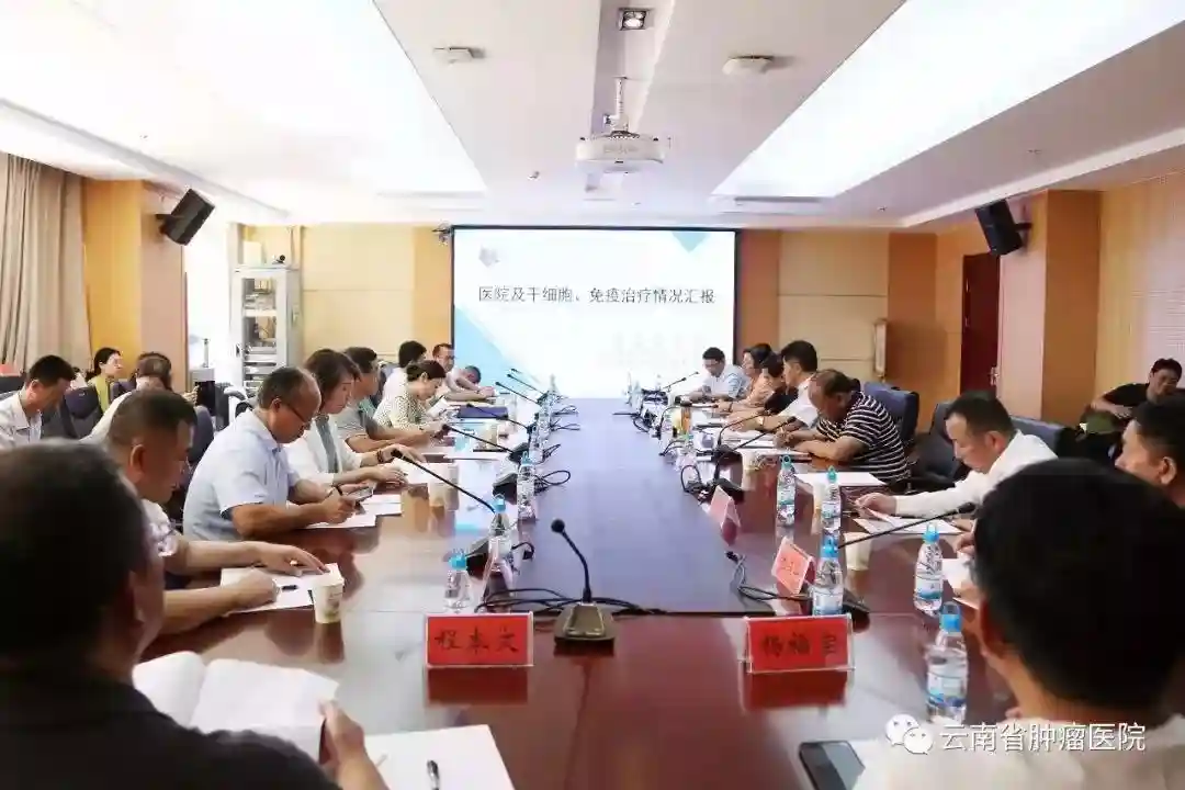 为做好省政协十二届二次会议重点提案《关于将干细胞产业作为我省“健康生活目的地”先导产业重点支持发展的提案》的办理工作,由省政协黄毅副主席领衔,组织省政协、省卫生健康委、省科技厅、省发展改革委、省财政厅、省人力资源社会保障厅、省药监局、九三学社云南省委、民进云南省委、农工民主党云南省委等领导,于7月3日到云南省肿瘤医院昆明医科大学第三附属医院,对医院干细胞工作有关情况开展调研,并召开干细胞产业发展座谈会暨第081号提案督办面商会。