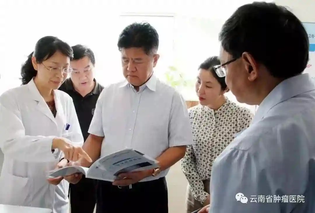 黄毅副主席一行领导在省卫健委主任杨洋、副主任许勇刚、健康产业发展处处长吴永寿、医院院长黄云超,副院长董坚、杨海君等人的陪同下,参观了医院肿瘤生物治疗中心、云南省细胞治疗技术转化医学重点实验室、云南省癌症中心分子诊断分中心,听取了医院领导对干细胞相关工作的汇报,详细了解干细胞的研究成果和临床运用情况。