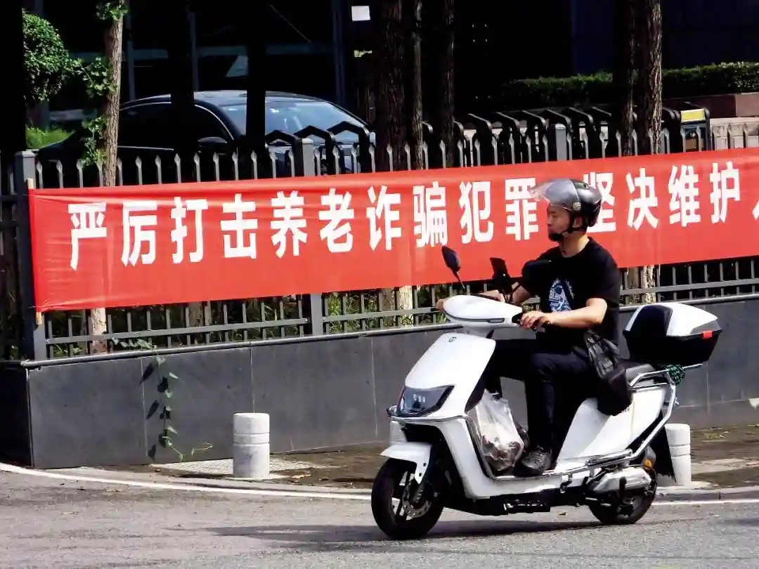 6月13日,湖北宜昌市街头打击养老诈骗犯罪的宣传横幅。图/IC