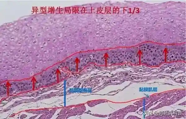 原来的轻度和中度异型增生归属低级别上皮内瘤变,重度异型增生则属高级别上皮内瘤变。
