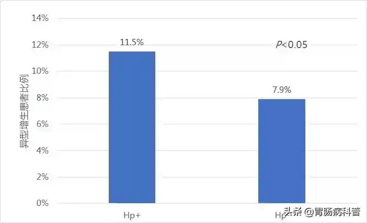 上图Hp感染时异型增生发生率