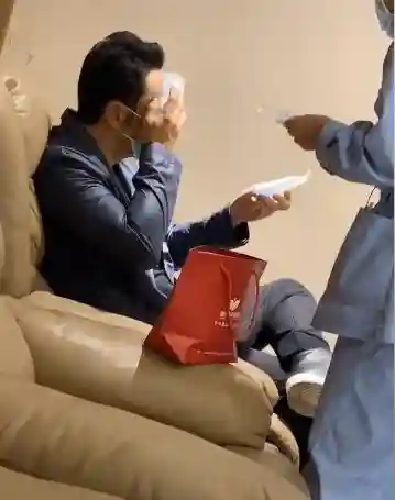 他身边没有其他人,只有护士一人陪伴,显得有些孤单。