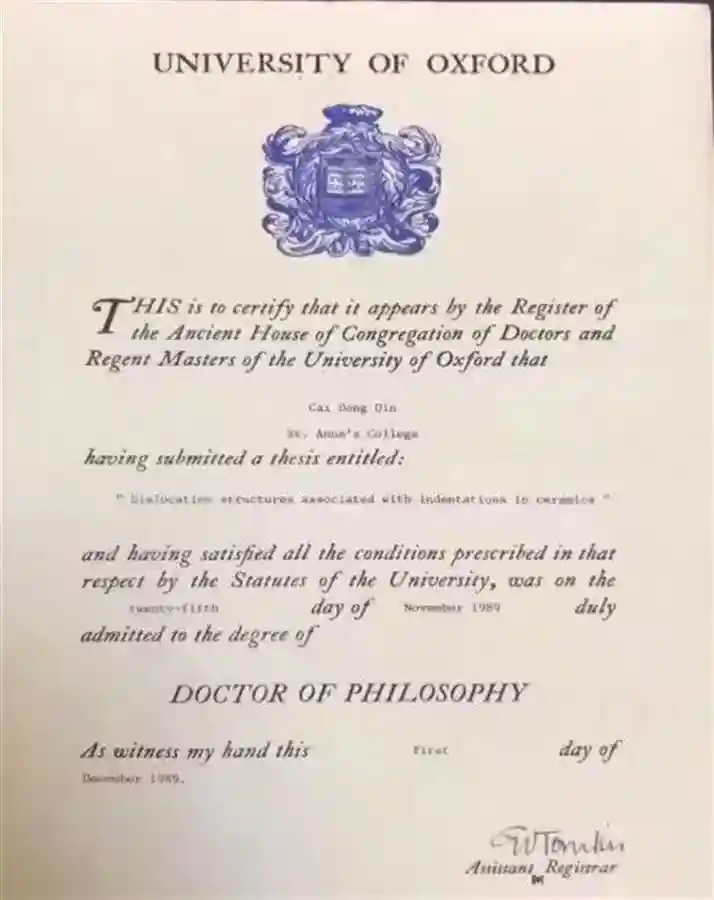 秦才东牛津大学博士学证书