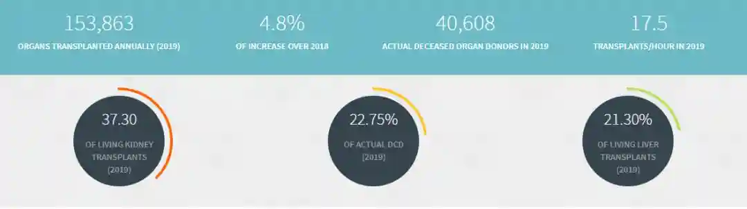 根据全球捐赠与移植观测站收集的数据显示,2019年全球一共进行了153863次器官移植,看起来数量挺多,但这个数字还不到需要器官移植总人数的3%。