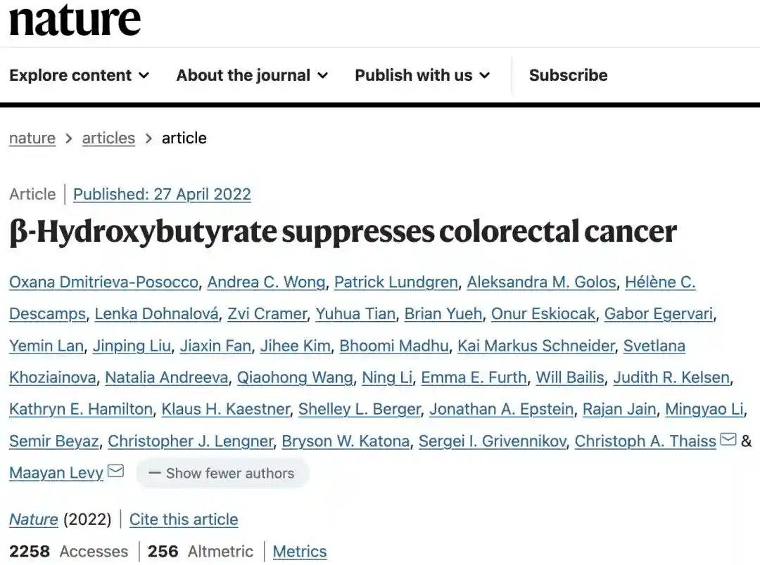 近日,宾夕法尼亚大学的和MaayanLevy教授领衔的团队在《自然》发表重要研究成果,破解了生酮饮食抑制肠癌的分子机制[1]。