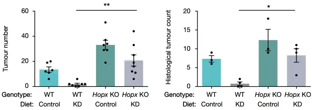 生酮饮食对Hopx功能缺失小鼠肿瘤无明显抑癌效果