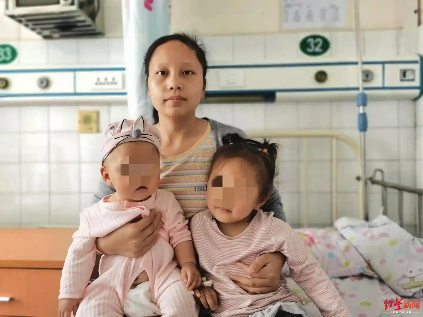 ↑琪琪每次入院输血,陈扬都得把两个孩子带在身边。