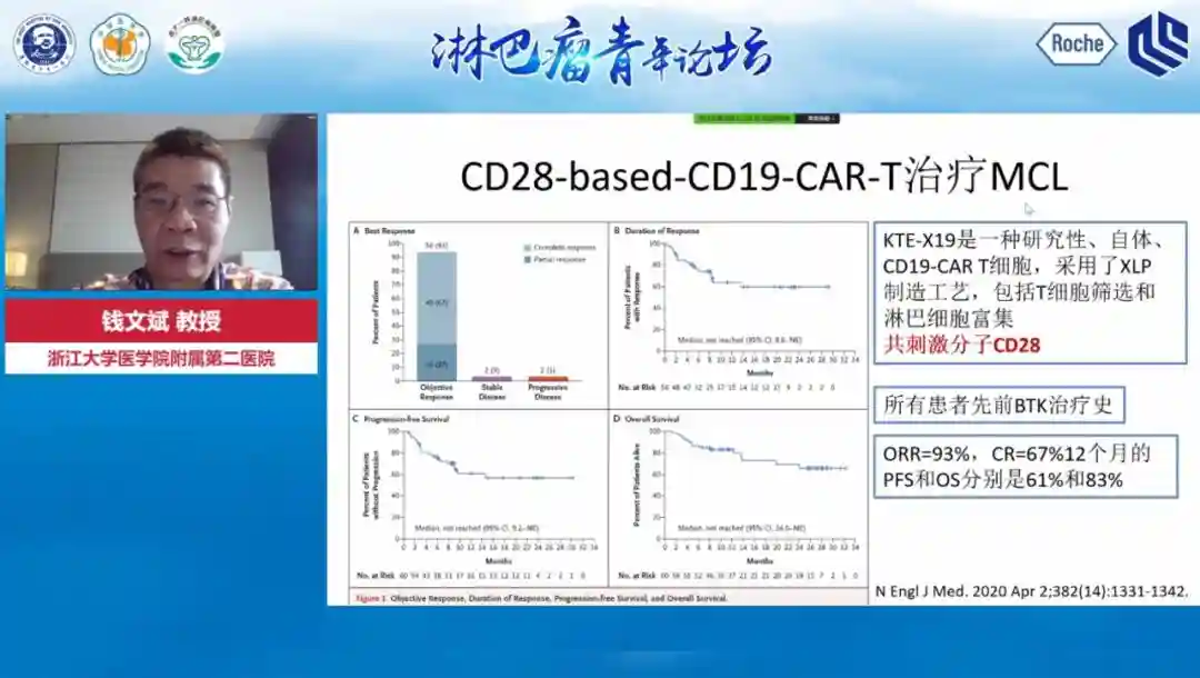 在最后一场学术报告中,由上海同济医院梁爱斌教授和中国医科大学附属盛京医院刘卓刚教授担任主持,浙江大学医学院附属第二医院钱文斌教授以“淋巴瘤CAR-T治疗进展”进行了分享。