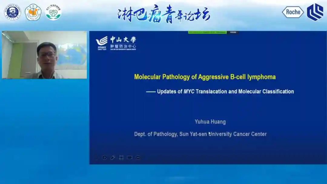 由北京友谊医院周小鸽教授和吉林大学第一医院王银萍教授担任主持,中山大学肿瘤防治中心黄雨华教授以“高侵袭性B细胞淋巴瘤分子病理进展”为题进行了学术报告,黄雨华教授表示,高侵袭性B细胞淋巴瘤具有高增殖活性的特点,MYC是一种多功能转录因子,在肿瘤发生中起重要作用,在高侵袭性B细胞淋巴瘤(包括伯基特淋巴瘤、双打击和三打击淋巴瘤、浆母细胞性淋巴瘤[PBL]等)的病理诊断和治疗中也具有重要意义。MYC驱动淋巴瘤的靶向癌蛋白合成在体内和体外都显示出了较好的治疗效果,提供了一种潜在的治疗策略。