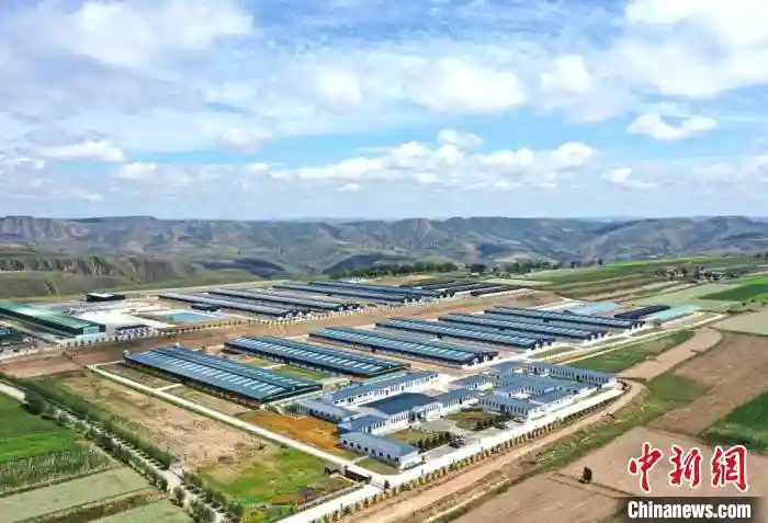 航拍视角下环县山城乡八里铺村山梁上的庆环肉羊制种有限公司。(资料图)李文摄