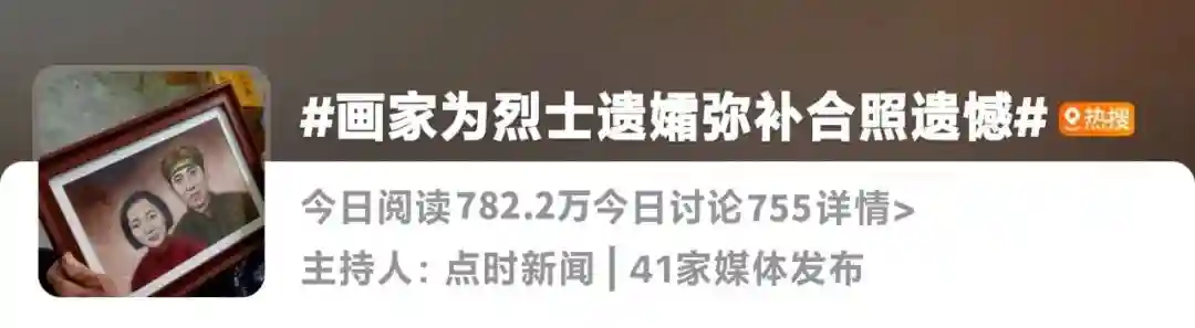 当画像带到陈秀英老人面前时,老人抚摸着画像潸然泪下,“你真回来了,你让我有真心等着,我等到95岁了。”
