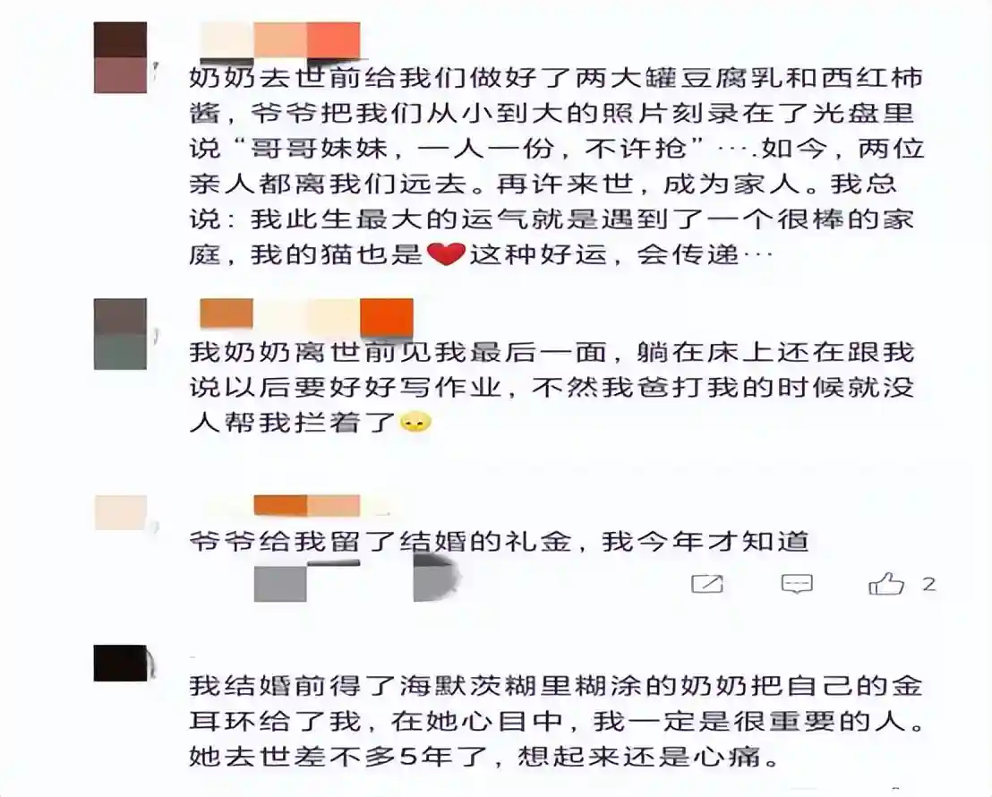 不少网友也分享了自己与爷爷奶奶的故事,读着读着不知不觉红了眼眶。