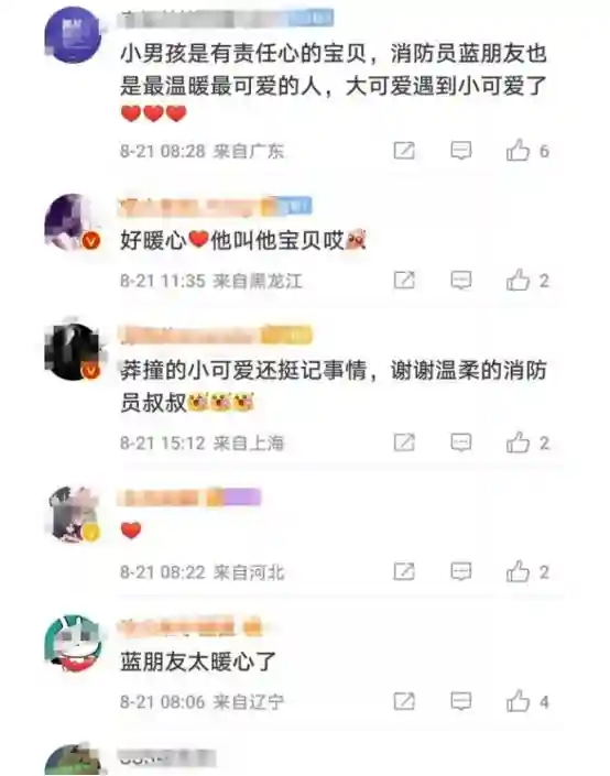 “谢谢叔叔……”“来来来……没事!没事……”“不要害怕了!宝贝!”“不用害怕,我们来了。”救援过程中,消防人员一直在温柔地抚摸着孩子的头部并不断安慰孩子,“宝贝,不用害怕。”“叔叔抱着你,不怕!咱回家了!”
