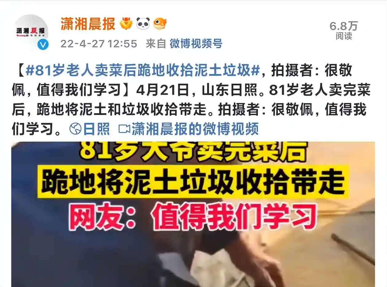 卖菜十几年,为了不影响环境,81岁的莒县大爷宓连登,在卖菜结束后总会将自己留下的垃圾收拾干净。