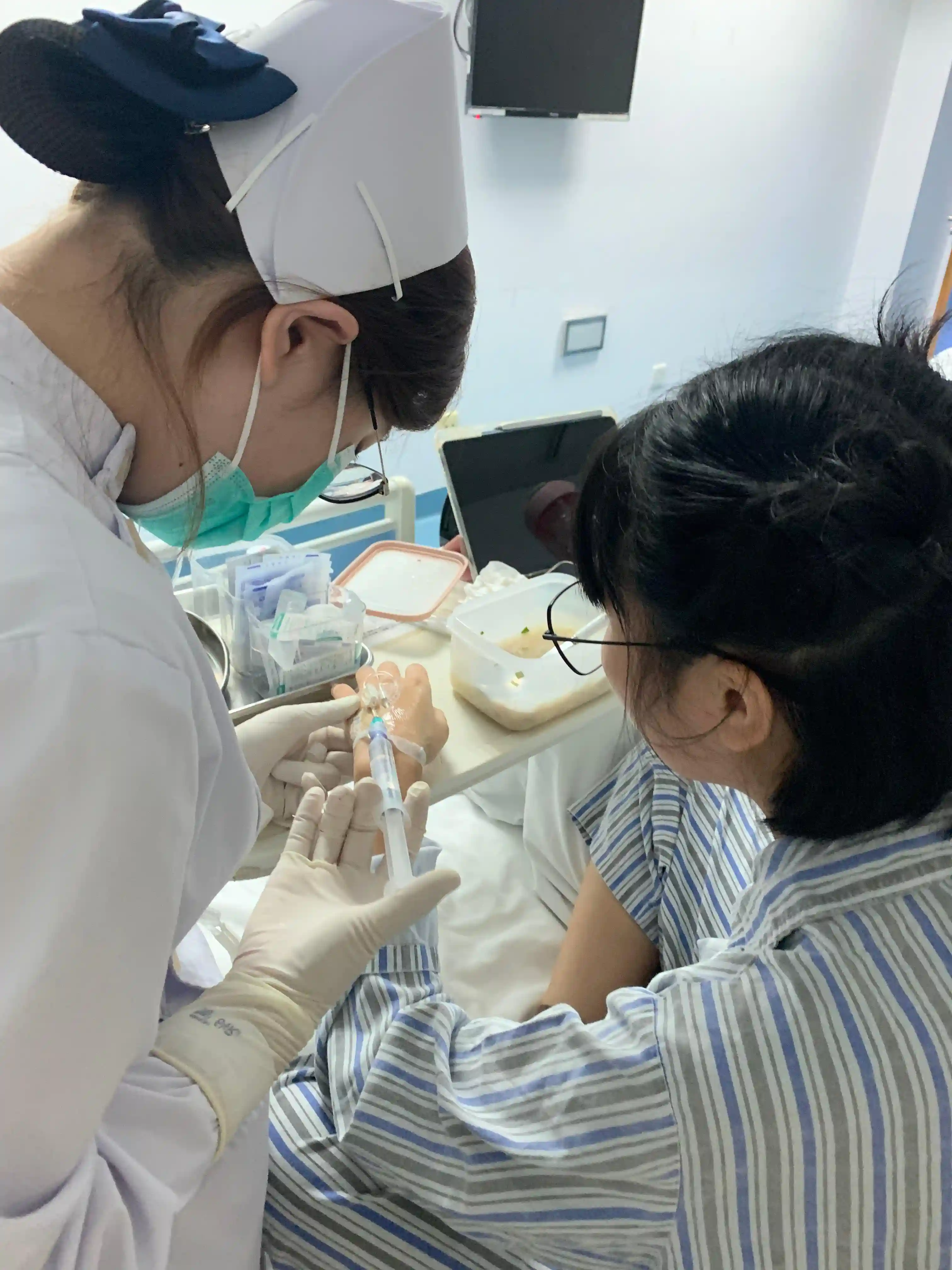 10月10日,护士在给吴采灵静脉注射。