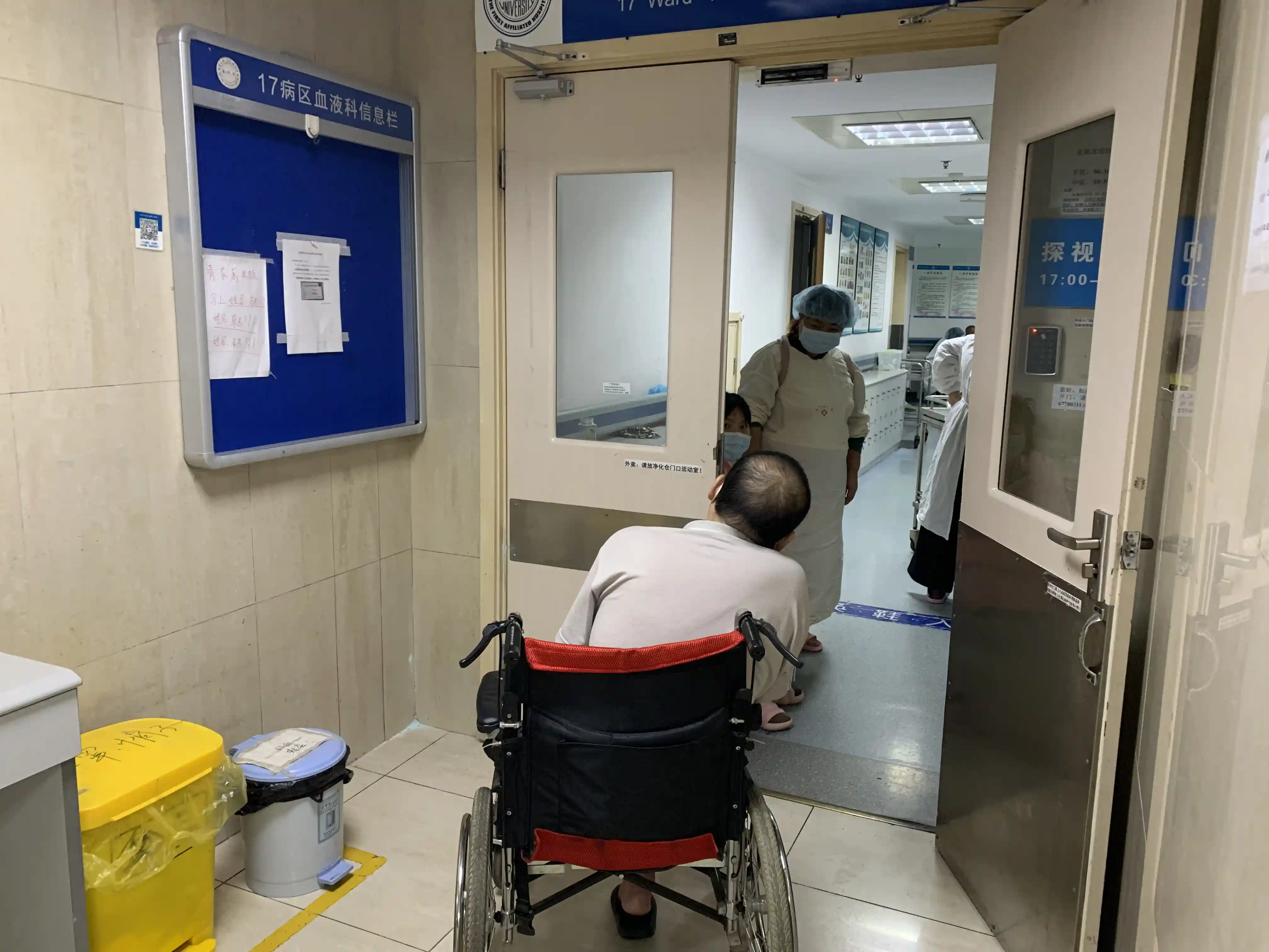 9月24日,隔着血液科病区的玻璃门,她见到了从安溪赶来的生父陈土树,他看上去很消瘦,一旁是生母黄亚柳,今年4月,她从收垃圾的车上摔下来,落下了腿伤,走路一瘸一拐。