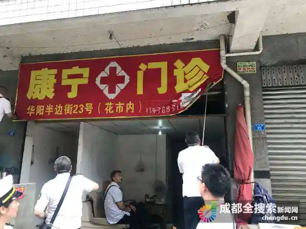 华阳半边街的花市,是附近最受欢迎的花市之一。而往花市里面走几步路,一个醒目的红色招牌吸引了不少人的注意,记者看到,招牌上写着“康宁诊所”,旁边还贴着一个就医电话。