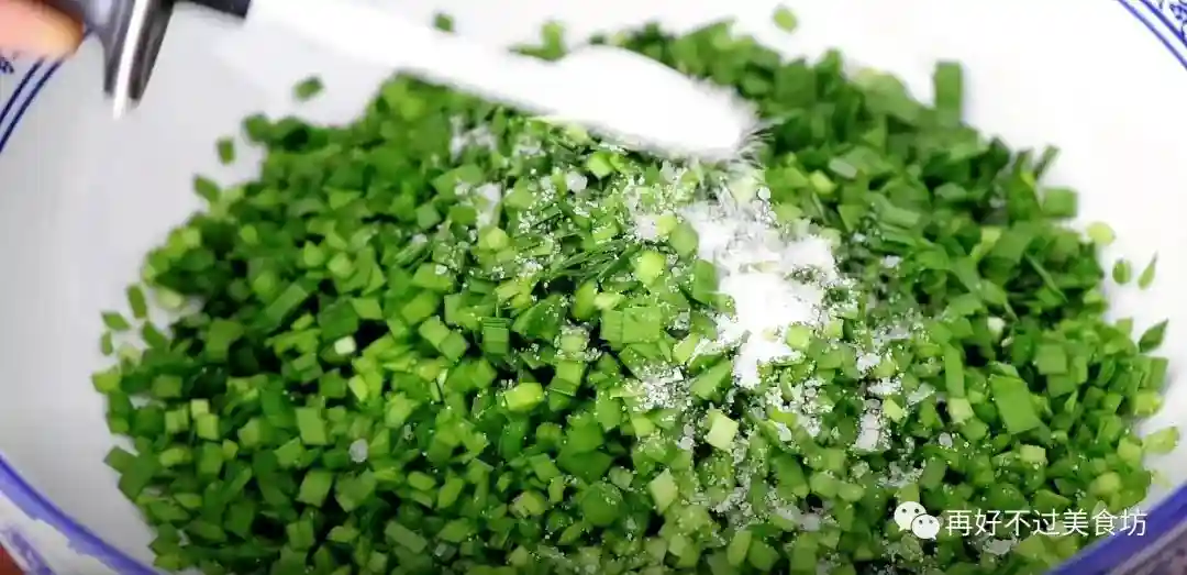 1、首先准备一把韭菜,韭菜根切成小段,韭菜叶子切成碎末,切好之后放入一个大盆中,再加入适量的食用盐,充分搅拌均匀,放一边腌制备用。