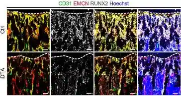 实验中研究人员使用模式动物敲除小鼠体内Gli1+细胞,发现在骨发育及缺损再生过程中H型血管都呈现明显下调趋势。